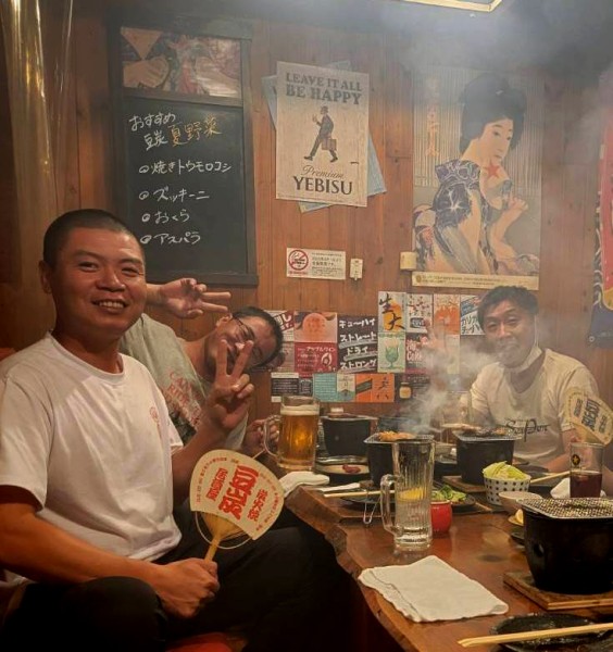 中国から来た実習生の方とビアガーデンに引き続き食事会を開催しました。